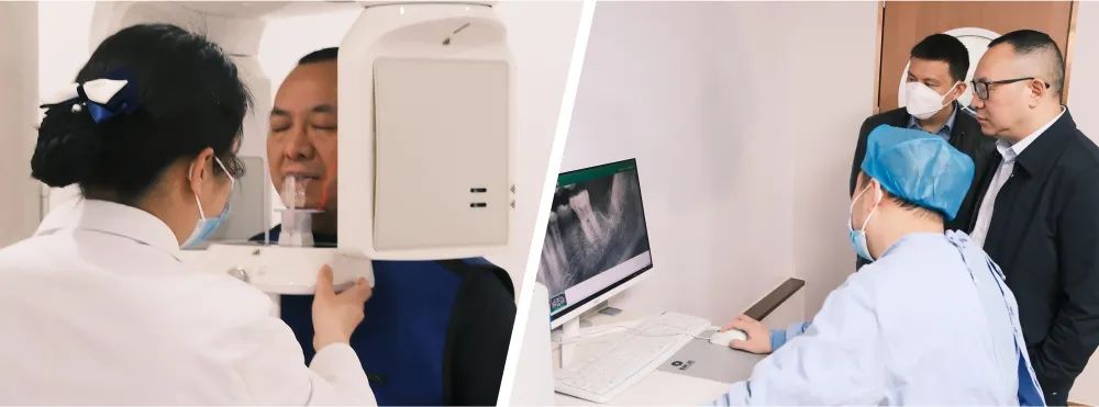 考察團來到新橋口腔數字化種植中心、數字化特檢室進行實地了解,胡登明院長還親自體驗了口腔CBCT檢查。檢查結束后,新橋口腔技術總監陳剛醫生為胡登明院長詳細分析了他的口腔狀況,并針對性提出了適宜的治療方案。