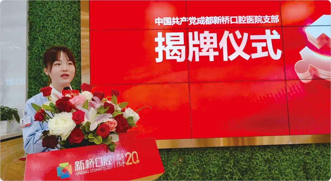 身為一名護士,蔣越表示在護士節當天被正式宣布當選新橋口腔第一屆黨支部書記,是自己人生中極具紀念意義的“巧合”。而她與華西種植專家/新橋口腔成都玉雙院區業務院長劉果生的同臺則更加令人感慨。一位是年近七旬的中國種植先驅,以40多年深耕厚植,引領中國口腔種植事業走向繁榮;一位是充滿朝氣的“新旗手”,以青春的活力,書寫奮斗與擔當!這一跨越50載的同臺,是新橋口腔“新老”兩代人的堅守與接力,也彰顯了新橋口腔始終如一,傳承華西品質與紅色精神的雙重內核!
