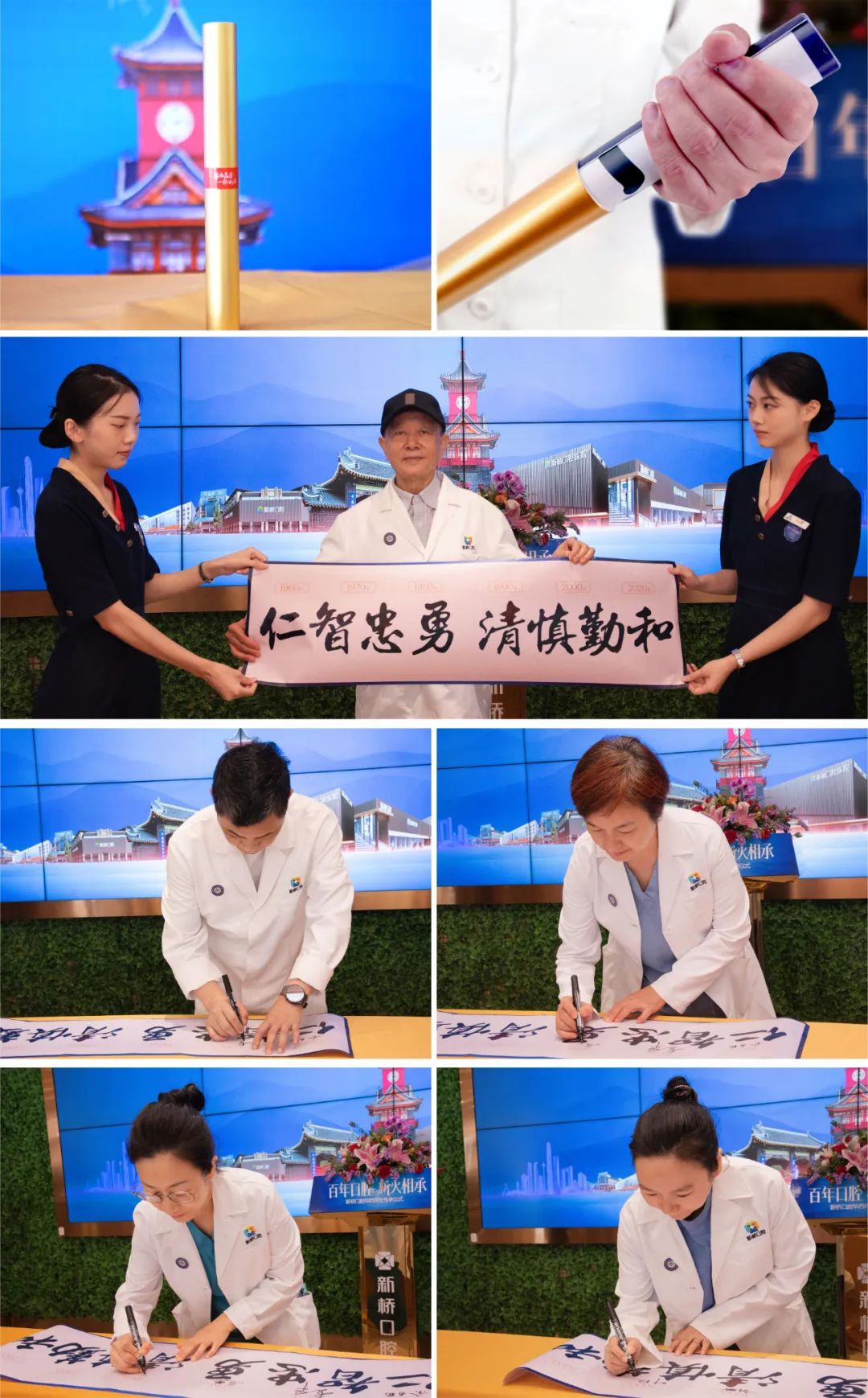 “仁智忠勇 清慎勤和” 書寫著華西校訓的卷軸從接力棒中取出,在傳承儀式上緩緩展開,由余自能教授開始,四代受教于同一所口腔圣地,懷揣著同一個醫學夢想,奮斗于同一處前沿陣地的新橋口腔華西師生們,莊嚴地留下了自己的學級和姓名,也留下了他們孜孜不倦,為口腔醫學事業傳遞薪火,護航萬千微笑的醫者仁心和師者圣心。