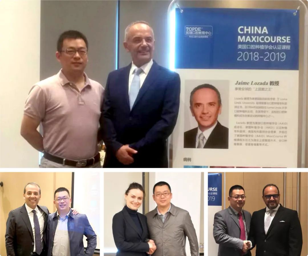 上圖:王旭東與羅馬琳達大學種植科主任Jaime Lozada教授 下圖:王旭東與MaxiCourse種植課程導師