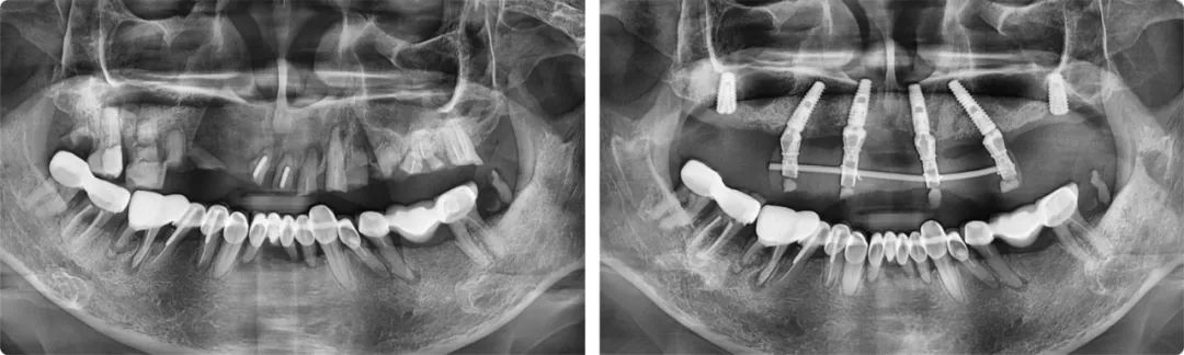 葉宏解釋了這樣做的原因:標(biāo)準(zhǔn)的無(wú)牙頜種植上頜一般是6-8顆,下頜4-6顆,如果口腔條件允許,他會(huì)建議患者至少要種六顆,這樣牙槽骨受力更加均勻。如果只種四顆,后期的維護(hù)成本相對(duì)較高。分兩步走的治療方案雖然麻煩一些,但保障了種植牙的遠(yuǎn)離穩(wěn)定性。