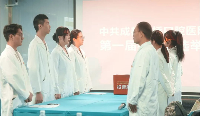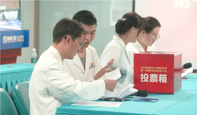 七一建黨節前夕,中國共產黨成都新橋口腔醫院支部黨員大會在新橋口腔成都衣冠廟院區隆重召開,本次大會以選舉產生黨支部委員會委員為主要任務,全體黨員到場參會。本次選舉采用“兩推一選”方式進行,即候選人由黨員和群眾共同推薦確定,經黨員大會選舉產生。