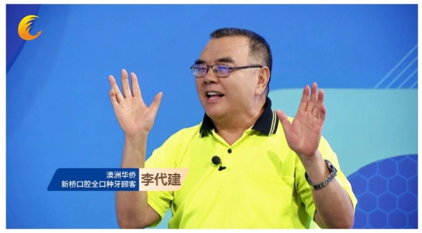 隨后,龔晴鏡頭下的主角之一,新橋口腔全口種牙顧客李代建叔叔也來到了演播室。李叔叔出生于四川德陽,現(xiàn)定居澳大利亞。今年3月,71歲的他在老伴的陪伴下歸國種牙,最終在新橋口腔圓夢口福,重拾燦爛笑容。不遠萬里奔赴成都,李叔叔分享了他的多方考量。