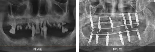 姜辰主任醫(yī)療團隊為陳叔叔定制了全口即刻種植修復方案。該方案既能滿足陳叔叔盡快恢復咀嚼功能的需求,又最大程度地減輕了他的痛苦,縮短了治療周期。手術在陳叔叔家人的陪伴下順利結束,當天,陳叔叔就戴上了臨時牙冠,恢復了基礎飲食功能。