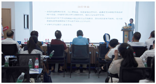 成都玉雙院區(qū)張橋醫(yī)生的《替牙期內(nèi)傾型深覆合隱形矯治一例》展示了對替牙期兒童錯頜畸形早期干預(yù)的重要性和技術(shù)要點(diǎn),通過詳實(shí)的資料和細(xì)致的講解獲得了評委團(tuán)的認(rèn)可。