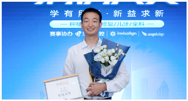 最受矚目的年度金獎,被成都蜀漢院區(qū)種植專業(yè)組副主任黃清川收入囊中。黃清川主任有兩個作品入圍決賽,其中《后牙區(qū)即刻種植早期負(fù)重一例》獲得??谱吭讲±劊秲?nèi)傾型深覆合終末期牙列患者全口種植一例》榮獲年度金獎。