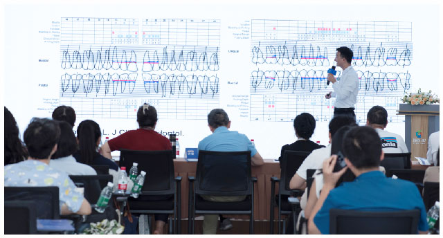 魯維希主任在點(diǎn)評病例時表示:“井醫(yī)生展示的兩個病例都非常具有代表性。特別是隱形矯治器治療成人骨性II類錯頜,患者牙性前凸占較多,還伴有下頜后縮,治療難度很大,井醫(yī)生采用強(qiáng)支抗控制技術(shù)控制后牙近中移動量,在安全范圍內(nèi)最大化內(nèi)收上前牙,取得了顯著的面部側(cè)貌改善。同時,在前牙內(nèi)收過程中,井醫(yī)生特別注意了控根移動,采用45°-55°的最佳施力角度實(shí)現(xiàn)了前牙的整體移動與壓低,取得了理想治療效果,展示了扎實(shí)的正畸專業(yè)功底。”